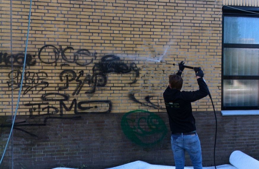 We hebben alle vervuilde geveldelen grondig gereinigd en de graffiti volledig verwijderd. Daarbij gebruikten we technieken die pasten bij de ondergrond zodat er geen schade ontstond. Zelfs hardnekkige verfresten kregen we op een veilige manier los waardoor de gevel weer strak en schoon werd.